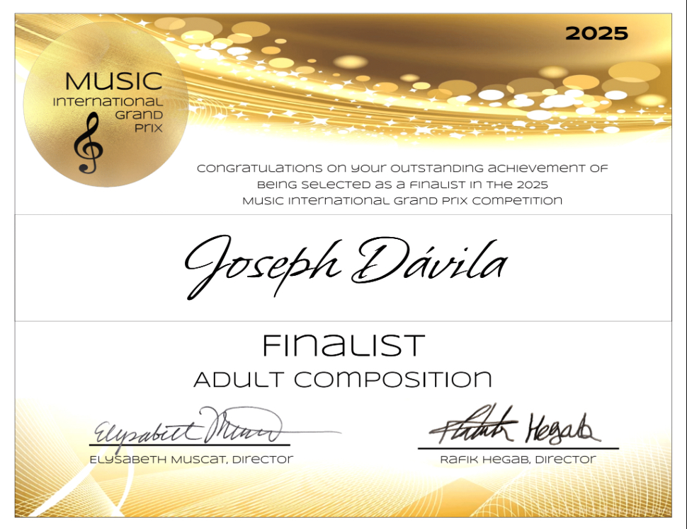 Even though the piece wasn’t performed live, it was submitted for judging and reviewed by a panel of professionals. Knowing that my music stood out in that kind of company really means a lot. It’s always rewarding to see your work connect with others, especially in a setting like this.